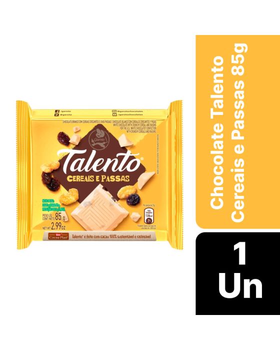 Chocolate Branco Talento Cereais E Passas 85g