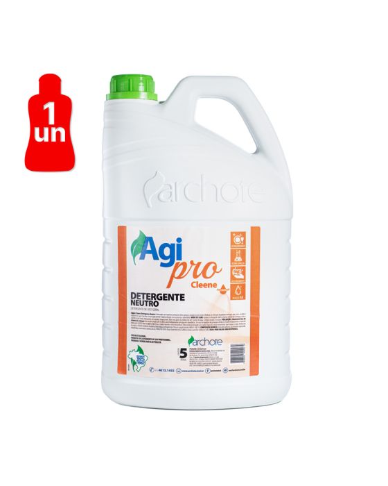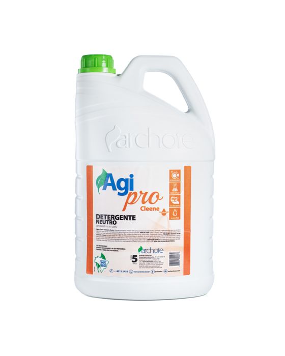 Características:- Detergente neutro concentrado para limpeza eficiente de superfícies e utensílios: O Detergente Neutro 5L Agipro Cleene foi desenvolvido para proporcionar alta eficiência na remoção de gorduras e sujidades em diversas superfícies laváveis. Sua formulação com matérias-primas de última geração garante desempenho superior na limpeza de louças, pias, pisos, azulejos e utensílios em geral, mantendo equilíbrio químico com pH neutro que contribui para uma limpeza eficaz sem agredir as superfícies.- Formulação concentrada com alto rendimento e economia de uso: Com elevada concentração, o produto permite diluição eficiente sem perda do poder de limpeza, oferecendo excelente rendimento em rotinas de higienização. Essa característica proporciona maior economia e praticidade tanto em aplicações domésticas quanto profissionais, permitindo adequação da diluição conforme o nível de sujidade.- Espuma eficiente com fragrância neutra e pH balanceado: O detergente apresenta líquido de coloração amarela e fragrância neutra, adequado para ambientes que exigem limpeza eficiente sem interferência intensa de aroma. Sua composição com tensoativos de alto desempenho promove espuma estável e ação eficaz na remoção de gorduras e resíduos, mantendo pH entre 6,5 e 7,5 quando puro.- Indicado para superfícies laváveis: Versátil, pode ser utilizado diluído na proporção de até 1:5 para limpezas leves e rotineiras, mantendo excelente desempenho. Para sujidades mais intensas, pode ser aplicado com menor diluição ou puro, garantindo maior ação desengordurante em utensílios e superfícies com acúmulo de resíduos.- Sobre a marca Agipro: A Agipro desenvolve soluções profissionais para limpeza e higienização, oferecendo produtos formulados com tecnologia moderna e matérias-primas selecionadas.- Dimensões do produto:Comprimento: 20cm;Largura: 14cm;Altura: 32cm;Peso: 5,14kg.IMPORTANTE! CONSERVAR FORA DO ALCANCE DAS CRIANÇAS E DOS ANIMAIS DOMÉSTICOS.* As especificações podem ser alteradas sem aviso prévio ** Imagem meramente ilustrativa.