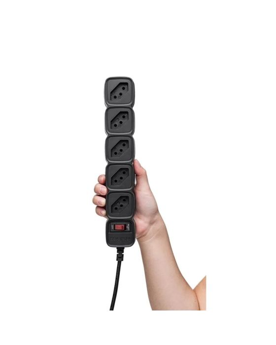 Características:O Protetor Eletrônico EPE 205 além de prover mais tomadas para conectar os equipamentos, também protege esses equipamentos contra surtos de tensão, curto ou sobrecarga.Isso porque ele conta com dupla proteção composta por chave inteligente e varistor. Esse modelo possui como destaques o fato de possuir 5 tomadas para conectarequipamentos e ainda conta com chave liga/desliga inteligente, que elimina a necessidade de se utilizar fusível.- Tensão nominal 100 ~ 240 Vac- Corrente máxima 10A- Potência máxima de operação 1.270W (127 V) e 2.200W (220 V)- Frequência de rede elétrica 50 ou 60Hz- Conexão de entrada Plugue 2P + T (NBR 14136) 10A- Quantidade de tomadas 5 tomadas 2P + T (NBR 14136) 10A- Comprimento do cabo de força: 1m- Chave liga/desliga: Chave inteligente com indicador luminoso de funcionamento- Tecnologias de Proteção: Varistor contra surtos de tensão. Chave inteligente tipo disjuntor (circuit breaker). proteção contra curto-circuito e sobrecarga- Dimensões (A x L x C): 3,6 x 5 x 27,2cm- Peso: 225g- Conteúdo da embalagem: 1 protetor eletrônico- Garantia: 1 Ano contra defeitos de fabricação* As especificações podem ser alteradas sem aviso prévio ** Imagem meramente ilustrativa.