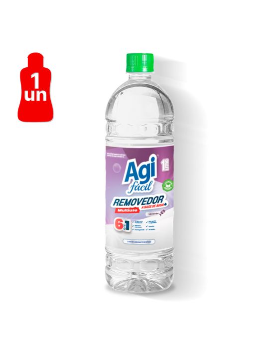 Características:- Removedor Multiuso Base de Água Lavanda 1L Agifácil: O Removedor Multiuso Base de Água Agifácil foi desenvolvido para remoção eficiente de sujeiras difíceis em diferentes tipos de superfícies, proporcionando limpeza prática sem necessidade de grande esforço mecânico. Indicado para uso doméstico e profissional, atua na dissolução de resíduos acumulados com ação eficaz e rápida.- Limpeza eficiente para múltiplas superfícies: Recomendado para aplicação em azulejos, metais, vidros, pisos e pias, pode ser utilizado puro para maior eficiência. Sua formulação base água facilita a aplicação e reduz odores intensos, tornando o processo de limpeza mais confortável. Líquido incolor com fragrância tradicional.- Composição técnica balanceada: Formulado com bicarbonato de sódio, hidróxido de sódio, sequestrante, conservante, fragrância, lauril éter sulfato de sódio e veículo, proporcionando ação desengordurante e removedora de resíduos impregnados.- Modo de uso Aplicar o produto puro em pano limpo ou esponja, esfregar na superfície desejada e, se necessário, finalizar com pano seco e limpo para melhor acabamento.- Aplicação indicada para ambientes domésticos e comerciais: Ideal para cozinhas, banheiros, áreas de serviço e superfícies laváveis em geral, auxiliando na manutenção da limpeza pesada do dia a dia.- Sobre a marca Agifácil: A Agifácil atua no segmento de produtos de limpeza, oferecendo soluções práticas e eficientes para higienização doméstica e profissional, com foco em desempenho e custo-benefício..- Dimensões do produto:Comprimento: 8cm;Largura: 8cm;Altura: 27cm;Peso: 1kg.IMPORTANTE! CONSERVAR FORA DO ALCANCE DAS CRIANÇAS E DOS ANIMAIS DOMÉSTICOS.* As especificações podem ser alteradas sem aviso prévio ** Imagem meramente ilustrativa.