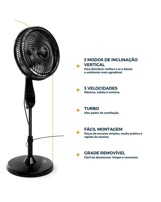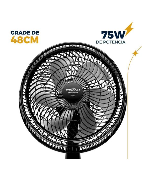 Características:- Ventilação potente e eficiente para qualquer ambiente: O Ventilador de Coluna Maxx Force BVC31A 220V Britânia é ideal para garantir conforto térmico em residências, escritórios e espaços comerciais. Equipado com motor de 75W e classificação energética “A”, oferece excelente desempenho com baixo consumo de energia, mantendo o ambiente agradável mesmo nos dias mais quentes.- Desempenho superior com tecnologia Maxx Force 6: Com hélice de 6 pás e diâmetro de 30 cm, o modelo utiliza a tecnologia Maxx Force 6 para proporcionar alta vazão de ar de 0,74 m³/s e com distribuição uniforme e silenciosa. A ventilação pode ser ajustada em três velocidades (suave, moderada e intensa), atendendo diferentes necessidades de uso com praticidade e eficiência.- Ajustes de altura e oscilação completa: Projetado para oferecer ampla cobertura de ventilação, o ventilador conta com oscilação horizontal automática e inclinação vertical regulável, permitindo direcionar o fluxo de ar com precisão. Sua coluna telescópica ajustável em até 14 cm garante flexibilidade para uso em diferentes ambientes e alturas.- Segurança e praticidade no uso diário: O Ventilador Maxx Force BVC31A possui sistema de proteção térmica que interrompe automaticamente o funcionamento em casos de superaquecimento, garantindo maior durabilidade e segurança. Sua grade removível de 38 cm facilita a limpeza e a manutenção, tornando o produto prático e funcional para o uso cotidiano.- Design moderno e estrutura resistente: Com acabamento na cor preta e estrutura em peças plásticas de alta qualidade, o ventilador combina estética moderna com resistência. É leve, estável e fácil de transportar, ideal para uso doméstico, escritórios, lojas, academias e ambientes com grande circulação de pessoas.- Marca referência em desempenho e inovação: A Britânia é uma das marcas líderes no mercado nacional de eletroportáteis, reconhecida pela qualidade, durabilidade e excelente custo-benefício de seus produtos. - Itens inclusos na embalagem: 1 Ventilador de coluna Maxx Force BVC31A 220V Britânia, 1 Manual de instruções.- Garantia do fornecedor: Garantia limitada de 1 ano contra defeitos de fabricação.- Dimensões do produto:Comprimento: 36cm;Largura: 38cm;Altura: 98cm;Peso: 3,975kg.- Dimensões da embalagem:Comprimento: 43,3cm;Largura: 13,5cm;Altura: 47,3cm;Peso: 4.293kg.* As especificações podem ser alteradas sem aviso prévio ** Imagem meramente ilustrativa.