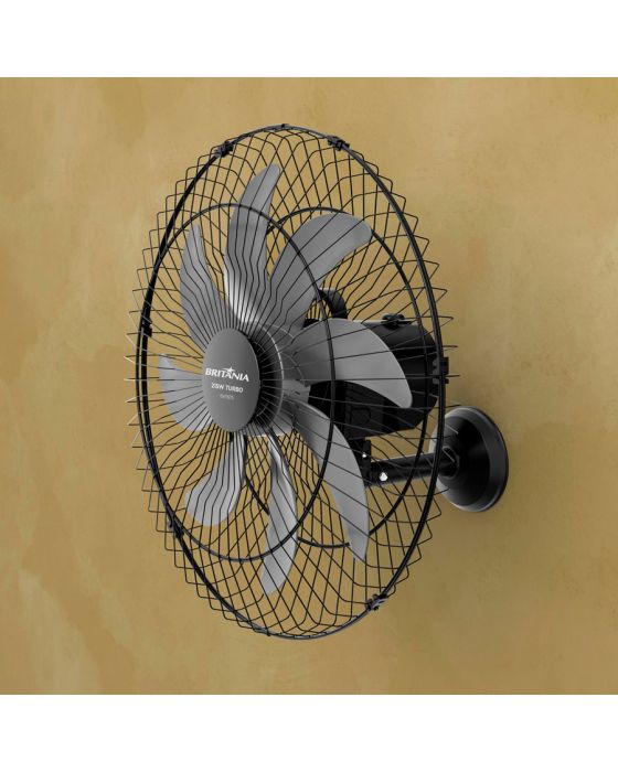 Características:Diga adeus aos dias de extremo calor com o Ventilador de Parede Britânia Turbo Maxx Force 215W BVT675. Com três velocidades e uma hélice de 8 pás com 51 cm de diâmetro, ele oferece extrema performance de ventilação. Tudo isso com incríveis 215W de potência!Aproveite a grande flexibilidade com o sistema de articulação, que permite ajustar a posição vertical e um botão que aciona a oscilação horizontal automática. Obtenha um maior conforto térmico de acordo com as necessidades do seu ambiente.A grade é metálica e removível, o que facilita muito no momento da limpeza, na hora de montar e desmontar o ventilador. Além disso, proporciona maior resistência garantindo a durabilidade.Para dias mais agradáveis ao refrescar seu ambiente com a máxima eficiência, conte com o Ventilador de Parede Britânia Turbo Maxx Force 215W BVT675!Detalhes:- Marca: Britânia;- Modelo: Maxx Force;- Referência: BVT675;- Linha: Ventiladores;- Cor: Preto;- Tensão: 220V;- Potência: 215W;- Tipo de instalação: De parede;- Contém: 1 unidade do produto;- Número de velocidades: 3 velocidades (mínimo, média e máxima);- Quantidade de pás: 8 pás;- Hélice com diâmetro de 51cm;- Grade com diâmetro de 60cm;- Grade metálica frontal removível;- Acompanha controle de temperatura para instalação na parede;- Sistema Oscilante.Diferenciais:- Grades metálicas com maior durabilidade;- Oscilação horizontal automática;- Inclinação vertical regulável;- Grade removível facilitando a limpeza;- Baixo consumo de energia elétrica.Energia:- Tensão: 220V;- Potência: 215W;- Classificação energética: A.Energia:- Tensão: 220V;- Potência: 215W;- Vazão: 0,08 m3/s;- Eficiência Energética (m3/s)W)*m: 0,003;- Consumo de energia (kWh/mês): 4,03;- Classificação energética: Velocidade Alta: C / Velocidade Média: D / Velocidade Baixa: D.Medidas:- Dimensões do produto: 33 x 45 x 61,5cm (CxLxA);- Dimensões da embalagem: 40 x 60 x 60cm (CxLxA);- Peso do produto: 3,36kg;- Peso da embalagem: 4,043kg.Conteúdo da embalagem: 1 ventilador Britânia Maxx Force BVT675, 1 controle de temperatura e 1 manual de instruções.Garantia do fornecedor: 1 ano contra defeitos de fabricação.* As especificações podem ser alteradas sem aviso prévio ** Imagem meramente ilustrativa.