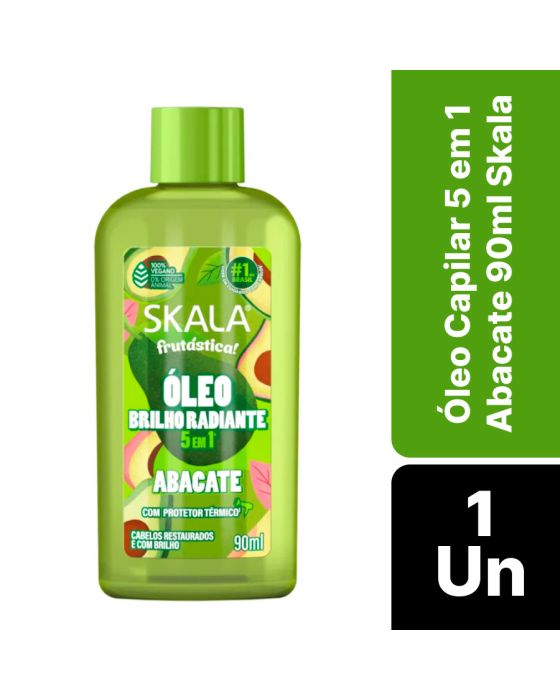 Características:- Óleo capilar multifuncional com ação nutritiva e brilho radiante: O Óleo Capilar 5 em 1 Abacate Skala promove nutrição, maciez e luminosidade aos fios por meio de ativos antioxidantes com alta afinidade com a fibra capilar. Enriquecido com abacate, fonte natural de Vitamina E, auxilia na proteção contra agressões externas e contribui para um aspecto saudável e leve dos cabelos, sem pesar.- Tratamento 5 em 1 para uma rotina capilar completa: Com proposta multiuso, o produto atua como reparador de pontas, umectação noturna, finalizador diário, protetor térmico de até 230 °C e potencializador de misturinhas. Essa versatilidade permite adaptar o uso às diferentes necessidades do cabelo, otimizando tempo e resultados no cuidado diário.- Textura leve com ação antioxidante e acabamento natural: Sua fórmula proporciona fios mais macios, restaurados e com brilho visível, mantendo leveza e movimento natural. O poder antioxidante do abacate contribui para a vitalidade dos cabelos, ajudando a reduzir o aspecto ressecado e opaco, especialmente em rotinas com uso frequente de fontes de calor.- Indicado para finalização, proteção térmica e tratamentos noturnos: Pode ser aplicado em cabelos secos ou úmidos, do comprimento às pontas, sem enxágue. É indicado para uso diário, finalizações, proteção antes de secador ou chapinha, além de tratamentos de umectação e combinações com máscaras capilares, atendendo diferentes tipos e rotinas de cuidado.- Sobre a marca Skala: A Skala é uma marca brasileira reconhecida por desenvolver produtos capilares acessíveis, eficazes e alinhados a práticas conscientes.- Dimensões da embalagem: Comprimento: 5cm; Largura: 3cm; Altura: 12cm; Peso: 108g.* As especificações podem ser alteradas sem aviso prévio ** Imagem meramente ilustrativa.