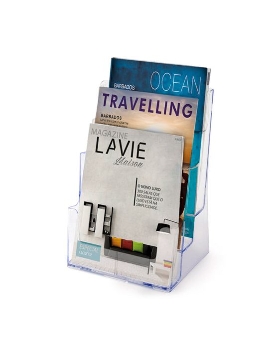 Características:- Organização funcional para o dia a dia: O Organizador de Escritório Vertical Triplo Home Office Cristal 10170032 Maxcril é a escolha ideal para quem busca praticidade na organização de documentos, revistas, projetos e arquivos diversos. Com design vertical triplo, permite armazenar diferentes materiais de forma ordenada, economizando espaço e facilitando o acesso rápido aos itens.- Design inteligente e versátil: Seu formato diferenciado mantém as folhas em pé sem projetá-las para frente, garantindo um visual mais limpo e organizado no ambiente de trabalho. Pode ser utilizado sobre bancadas e mesas ou instalado diretamente na parede, oferecendo versatilidade na adaptação a diferentes necessidades e espaços.- Construção resistente e durável: Fabricado em poliestireno de alta qualidade, o organizador oferece resistência e durabilidade mesmo em uso contínuo. O acabamento cristal proporciona leveza estética e facilita a visualização dos documentos armazenados, além de se integrar facilmente a qualquer ambiente corporativo ou home office.- Uso prático em diferentes ambientes: Compacto e robusto, o organizador é ideal para escritórios, salas de estudo, home offices e áreas administrativas que demandam agilidade na gestão de papéis e materiais impressos. Sua estrutura tripla garante maior capacidade de armazenamento sem comprometer a organização do espaço.- Marca de confiança: A Maxcril é reconhecida pela fabricação de produtos em plástico com design prático e funcional, oferecendo soluções acessíveis e de qualidade para escritórios, escolas e uso doméstico.- Dimensões do produto:Comprimento: 14,5cm;Largura: 7cm;Altura: 32,5cm;Peso: 530g.* As especificações podem ser alteradas sem aviso prévio ** Imagem meramente ilustrativa.