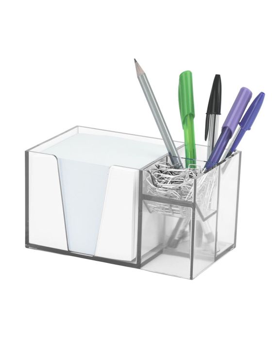 Caracteristicas:- Fabricado em poliestireno- Espessura de parede de 3mm garante alta resistência e durabilidade- Perfeita estabilidade sobre a mesa- Acompanha papel lembrete branco de gramatura de 75g- Dimensões: 156 x 94 x 85 mm- Medidas do rascunho: 94 x 74 x 80 mm* As especificações podem ser alteradas sem aviso prévio ** Imagem meramente ilustrativa.