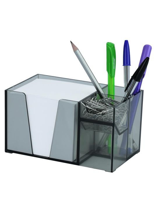 Caracteristicas:- Fabricado em poliestireno- Espessura de parede de 3mm garante alta resistência e durabilidade- Perfeita estabilidade sobre a mesa- Acompanha papel lembrete branco de gramatura de 75g- Dimensões: 156 x 94 x 85 mm- Medidas do rascunho: 94 x 74 x 80 mm* As especificações podem ser alteradas sem aviso prévio ** Imagem meramente ilustrativa.