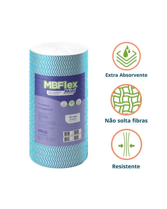 Características:O Pano Multiuso Mini MBFlex Azul Medix promove uma limpeza prática, rápida e eficaz e ideal para a limpeza e secagem de superfícies e utensílios. Desenvolvido para garantir resistência e delicado com a superfície, fazendo com que o pano multiuso limpa, dá brilho, não solta fiapos e higiênicos, sem reter odores e fácil de destacar.Detalhes:- Marca: Medix;- Modelo: MBFlex Mini;- Referência: 9449;- Linha: Panos Descartável Multiuso; - Cor: Azul;- Tamanho do pano: 30 x 50cm (CxL)- Gramatura: 35g/m2;- Quantidade de panos: 50 panos;- Contém: 1 unidade do produto com 50 panos;- Prático e Higiênico;- Extra Absorvente;- Não solta fibras;- Fácil de destacar;- Resistente;- Produto não perecível.Fabricado na China. | Validade: Indeterminada.Ideal para:- Ideal para a limpeza de diversas superfícies como utensílios domésticos e limpeza de superfícies em gerais.Modo de uso:- Abrir o rolo;- Destacar um pano;- Proceder com a limpeza do local ou utensílio;- Descartar após o uso ou higienizar para reutilizar.Composição:- 49% Celulose e 51% Poliéster.Medidas:- Dimensões do produto: 8,8 x 8,8 x 29,5cm (CxLxA);- Peso: 262g.* As especificações podem ser alteradas sem aviso prévio ** Imagem meramente ilustrativa.