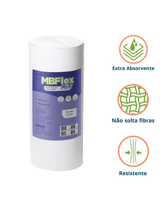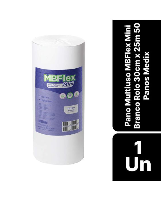 Pano Multiuso Mini Mbflex Branco Rolo 30cm X 25m C/50 Panos Medix