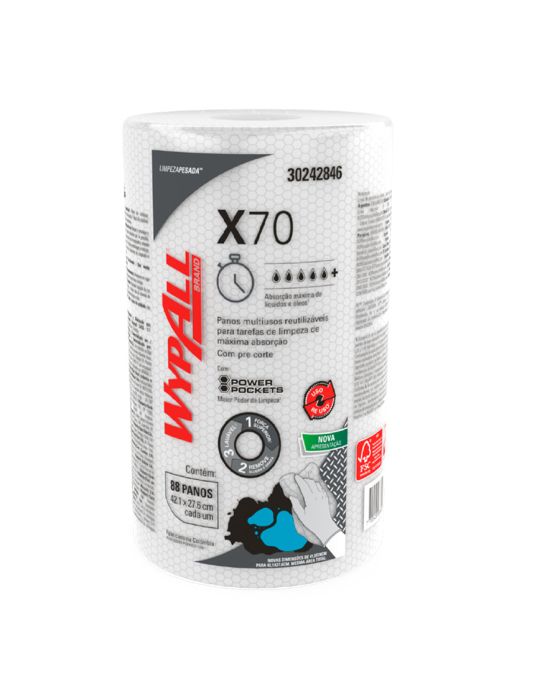 Características:- Eficiência superior em limpeza profissional: O Pano Multiuso WypAll® X70 Plus é uma solução desenvolvida para atender às mais diversas demandas de higienização em ambientes corporativos, industriais e comerciais. Ideal para limpeza e secagem de superfícies, aplicação de solventes, remoção de óleos, graxas e gorduras, proporciona alta performance e confiabilidade no dia a dia.- Tecnologia Hydroknit®: Produzido com a exclusiva tecnologia Hydroknit, o pano combina a absorção da celulose com a resistência do polipropileno, garantindo durabilidade mesmo em tarefas pesadas e contato com solventes. Essa estrutura reforçada proporciona rápida absorção de líquidos e mantém o pano íntegro durante o uso.- Power Pockets para limpeza intensiva: O modelo X70 Plus conta ainda com a tecnologia Power Pockets, que amplia o poder de remoção de sujeiras difíceis, aumentando a eficiência da limpeza em comparação às versões sem esse recurso.- Praticidade no uso e distribuição: Apresentado em rolo com 88 panos, cada unidade mede 42,1 x 27,6 cm, permitindo cortes rápidos e manuseio prático. Além disso, os panos são laváveis e reutilizáveis, garantindo economia e maior vida útil em diferentes aplicações.- Composição técnica e sustentabilidade: Produzido a partir de fibras de celulose, polipropileno e aditivos de resistência, o pano multiuso possui força superior e é certificado pelo selo FSC, assegurando que sua produção respeita critérios ambientais e de sustentabilidade.- Qualidade WypAll® – Kimberly-Clark Professional™: Reconhecida por sua confiabilidade e inovação, a marca garante ferramentas de alto desempenho para empresas que exigem higiene, eficiência e segurança em suas operações.- Dimensões do produto:Comprimento: 16cm;Largura: 16cm;Altura: 28cm;Peso: 956g.* As especificações podem ser alteradas sem aviso prévio ** Imagem meramente ilustrativa.