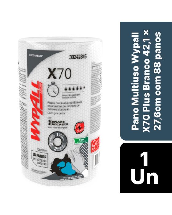 Pano Multiuso Wypall X70 Plus Branco 42,1 X 27,6cm C/ 88 Panos