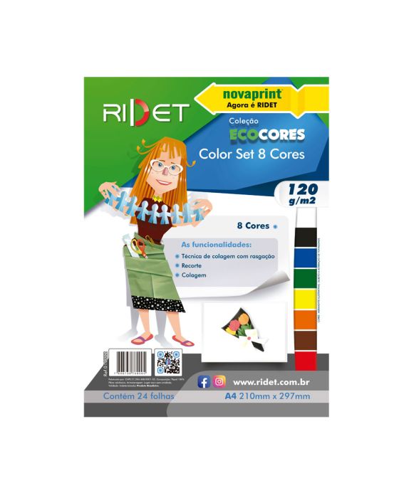 Papel Ecocores Criativo 08 Cores A4 120gr 21x29,7 Cm 24 Fls Ridet