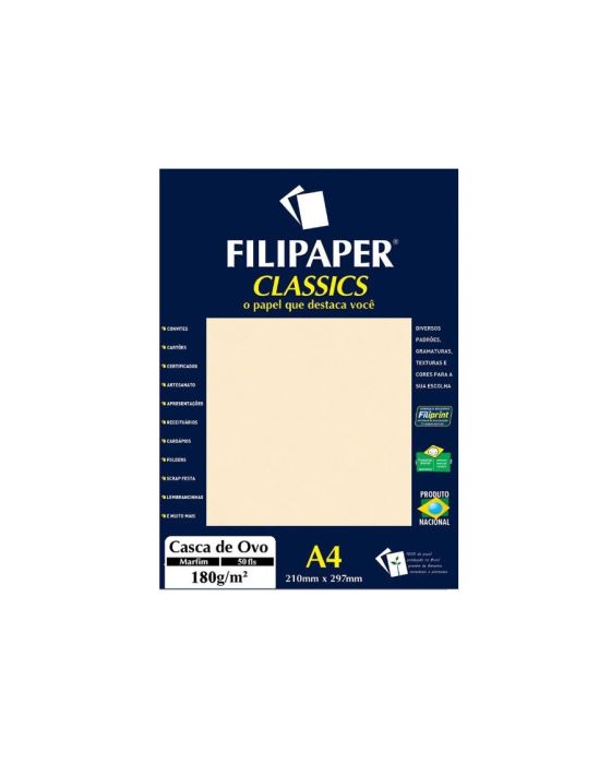Papel Especial Casca De Ovo Marfim A4 180g 50fls Filipaper 1331