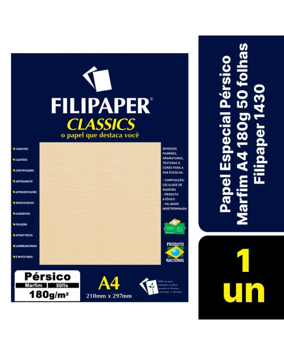 Papel Especial Persico Marfim A4 180g 50fls Filipaper 1430