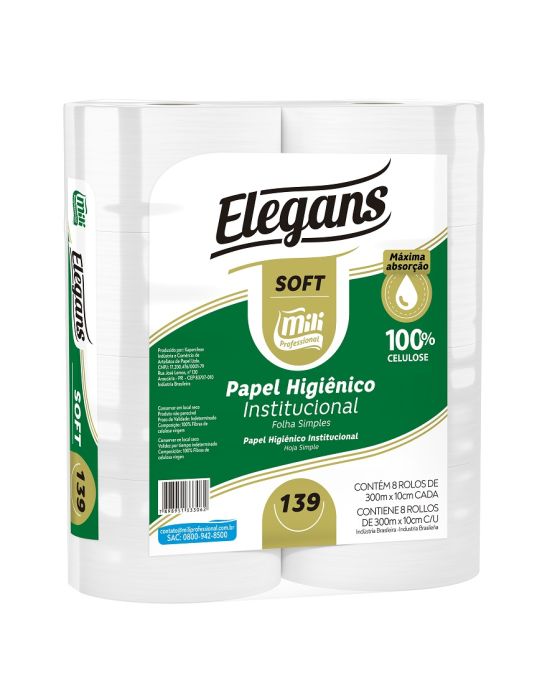 Papel Higienico Folha Simples Rolao 300m Branco Soft 20g Pt C/8 Rolos Mili Professional 139