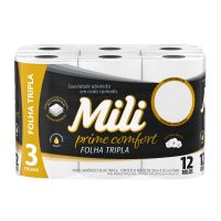 Caracteristicas:A linha de papel higiênico com folha Tripla Mili Prime é a opção certa para cuidar da família e empresa.Tem rolos com alta capacidade de absorção e resistência, além de serem testados nos melhoreslaboratórios, tudo para garantir segurança e qualidade. - Embalagem com 3 pacotes com 4 rolos cada - 20m x 10cm - Folha Tripla - Neutro* As especificações podem ser alteradas sem aviso prévio ** Imagem meramente ilustrativa