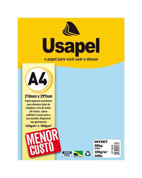 Papel Sulfite A4 180g 60kg Azul 50fls Usapel Ww