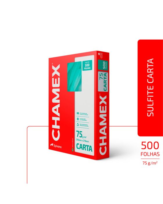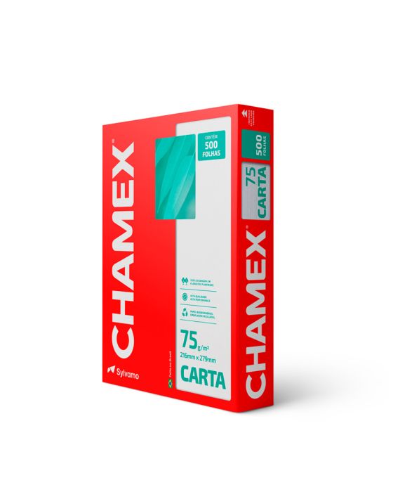 Caracteristicas:- Chamex A4 75g garante ótima performance em todo tipo de atividade, como criar, escrever, imprimir e reproduzir.- Com superfície resistente, corte perfeito e equilibrada absorção, permite melhor deslizamento do papel na impressora e evita desperdício de tinta.- É produzido a partir do cultivo de eucalipto 100% renovável e as fibras são tratadas para obter o mais elevado grau de brancura.- Chamex A4 75 garante excelente performance em equipamentos e impressoras de alta velocidade. - O teste foi realizado em laboratórios da International Paper nos EUA. Nesse teste, são impressos, continuamente, 10.000 folhas de papel em impressoras de alto volume e é aceitável 1 atolamento a cada 10.000 cópias. - Os testes foram efetuados em equipamento multifuncional com velocidade de 180 páginas por minuto.99% de não atolamento- Para excelência nos resultados, é necessário que o papel seja armazenado em local adequado, isento de umidade e luminosidade excessiva, bem como isento de avarias que possam comprometer as características originais de fabricação do papel.- Importante: a qualidade do papel influencia no processo de impressão, porém os componentes dos equipamentos, assim como a manutenção e qualidade deles também são responsáveis.- A International Paper garante a qualidade do papel no processo de impressão.- Formato: Carta (216x279mm)- Gramatura: 75g/m2- Folhas/resma:500- Resma/caixa: 10- Certificação: Cerflor * As especificações podem ser alteradas sem aviso prévio ** Imagem meramente ilustrativa.