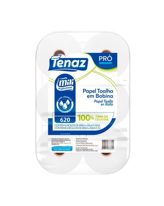 Características:- Alta performance em ambientes profissionais: Desenvolvido para atender às necessidades de empresas, comércios, clínicas e demais ambientes de alto fluxo, o Papel Toalha em Bobina Mili Professional oferece alto rendimento, absorção eficiente e estrutura resistente. - Embalagem com 6 rolos: A embalagem contém 6 rolos, cada um com 19 cm de largura e 200 metros de comprimento, ideal para uso contínuo em dispensers automáticos ou manuais.- Composição e estrutura do papel: Fabricado com 100% celulose branca, o papel possui gramatura de 28 g/m², conferindo equilíbrio ideal entre resistência e absorção. A alvura mínima de 80% assegura uma coloração branca uniforme, contribuindo para a estética e percepção de limpeza nos ambientes. O diâmetro dos rolos varia entre 158 mm e 160 mm, garantindo compatibilidade com a maioria dos dispensers do mercado.- Qualidade garantida pela Mili Professional: A Mili Professional é referência no fornecimento de soluções em higiene institucional. Com tecnologia de ponta e controle rigoroso de qualidade, seus produtos são projetados para oferecer segurança, padronização e excelente custo-benefício no uso diário.- Dimensões do rolo (cada):Comprimento: 15,5cm;Largura: 15,5cm;Altura: 18,5cm.- Dimensões da embalagem:Comprimento: 45,8cm;Largura: 31,2cm;Altura: 18,9cm;Peso: 5,86kg.* As especificações podem ser alteradas sem aviso prévio ** Imagem meramente ilustrativa.