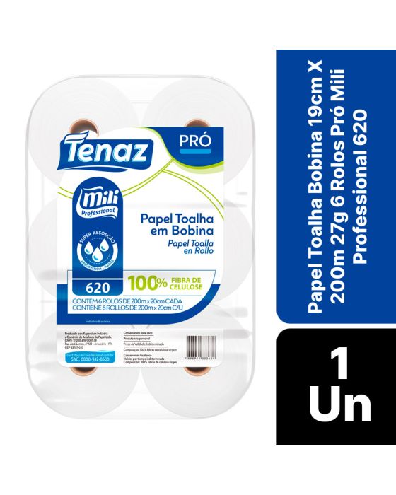 Papel Toalha Bobina 19cm X 200m 28g 6 Rolos Pro Mili Professional 620