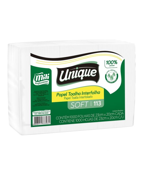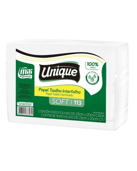 Características:- Linha: Mili Interfolha Soft – destinada ao uso profissional e institucional, com performance superior de absorção;- Composição: 100% celulose virgem, proporcionando maciez, resistência e alta capacidade de absorção;- Dimensões da folha: 23 cm x 20 cm- Gramatura: 20g/m²- Dobra: 2 dobras, compatível com toalheiros interfolha para sistemas de 2 ou 3 dobras- Embalagem: Fardo com 1.000 folhas (contendo 3 pacotes com 334 folhas cada)- Cor: Branco- Finalidade: Indicado para ambientes corporativos, instituições, banheiros coletivos, clínicas, restaurantes, indústrias e ambientes de grande circulação.- Marca: Mili Professional – referência em higiene institucional* As especificações podem ser alteradas sem aviso prévio ** Imagem meramente ilustrativa.