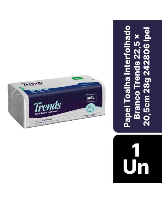 Papel Toalha Interfolhado Branco Trends 22,5 X 20,5cm 28g C/ 250fls Ipel 242806
