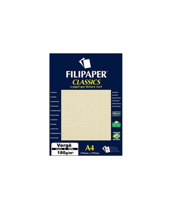 Papel Verge A4 180g Creme 50fls Filipaper 981