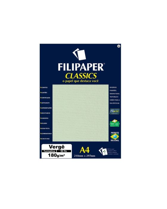 Papel Verge A4 180g Turmalina 50fls Filipaper 996