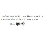 Os Parafusos de Pasta Catálogo Laza, são a solução perfeita para o melhor acabamento em trabalhos como: Álbuns, Pastas, Trabalhos Escolares, Fichários, Mostruários, Catálogos, Blocos de Anotações, Acrílicos e as mais diversas aplicações de acordo com a criatividade do cliente.Mas não abre mão de ótimo acabamento, qualidade, durabilidade e principalmente, a garantia de adquirir um produto extremamente versátil, pois devido à sua extrema funcionalidade, as possibilidades são inesgotáveis.Compõe o conjunto: Haste ou corpo + cabeça (c/fenda)Caracteristicas: - Parafuso niquelado com prolongador de metal para pasta catálogo. - Perfeito encaixe entre as peças - Tamanho:5 mm - Embalagem: 100 unidades - Produto completo: parafuso + cabeça de fechamento - Marca: Laza - Peso Aproximado: 200grs - Dimensões em cm: A x L x P = 1,0 x 8,5 x 8,5Conheça a linha de prolongadores de parafusos, de forma a ter a opção de comprimentos intermediários, sem a necessidade de desmontar as pastas. * As especificações podem ser alteradas sem aviso prévio ** Imagem meramente ilustrativa.
