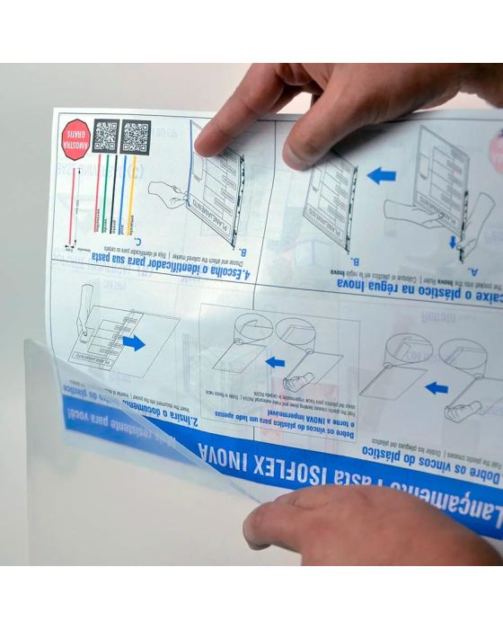 Características:A Pasta Isoflex Inova A4 Retrato protege e facilita a visualização de documentos que devem estar em fácil acesso. É excelente para proteger, padronizar e organizar indústrias, escritórios e comércios, com um design diferenciado, permite vedar o documento para a PROTEÇÃO TOTAL CONTRA ÁGUA, PÓ E SUJEIRA. Possui a melhor qualidade do mercado: o material da pasta é de alta espessura e a régua é produzida em plástico ABS (o mesmo plástico utilizado na fabricação de carros) tornando o produto mais resistente. Detalhes:- Marca: Isoflex;- Modelo: Inova;- Referência: PIN-A4-R;- Linha: Pastas;- Formato: Retrato/Vertical;- Tamanho: 310 x 220mm (31 x 20cm);- Tamanho documentos: A4 (29,7 x 21cm);- Cor da régua: Cinza;- Cor da pasta: Incolor;- Contém: 1 unidade do produto;- Divisões: régua e pasta plástica;- Produto resistente a àgua;- Modelo patentado Isoflex.Indústria Brasileira. | Validade: Indeterminada.Ideal para:- Ideal para colocar Procedimentos, Ordens de serviço, Planilhas de vendas, Tabelas de preços, Instruções de trabalho, Fichas médicas, POPs de treinamentos, Planejamentos, Catálogos e Receitas.Modo de uso: - Dobre os vincos do plástico um para cada lado, caso queira tornar a Inova resistente a água, dobre os dois vincos para o mesmo lado;- Insira o documento dentro do plástico;- Encaixe o plástico na régua Inova;- Aplique os acessórios na sua pasta.Composição:- Fabricado em Plástico ABS e PP.Medidas:- Dimensões do produto: 21 x 15 x 0,1cm (CxLxA);- Dimensões da etiqueta: 19 x 14 x 0,01cm (CxLxA);- Peso: 0,6g.Conteúdo da embalagem: 1 Pasta inova, 1 Régua na cor cinza e acessórios.* As especificações podem ser alteradas sem aviso prévio ** Imagem meramente ilustrativa.