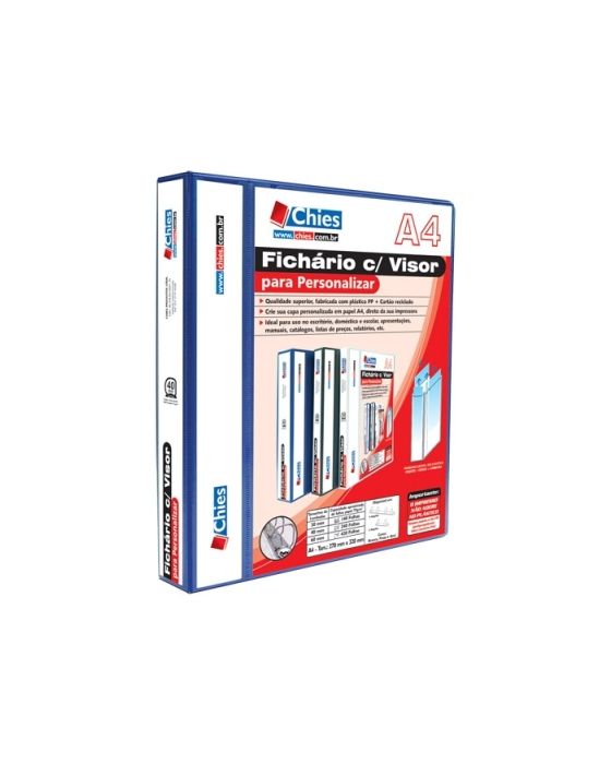 Pasta Fichario 4 Argolas 40mm Azul P/ Personalizar 1400 Chies