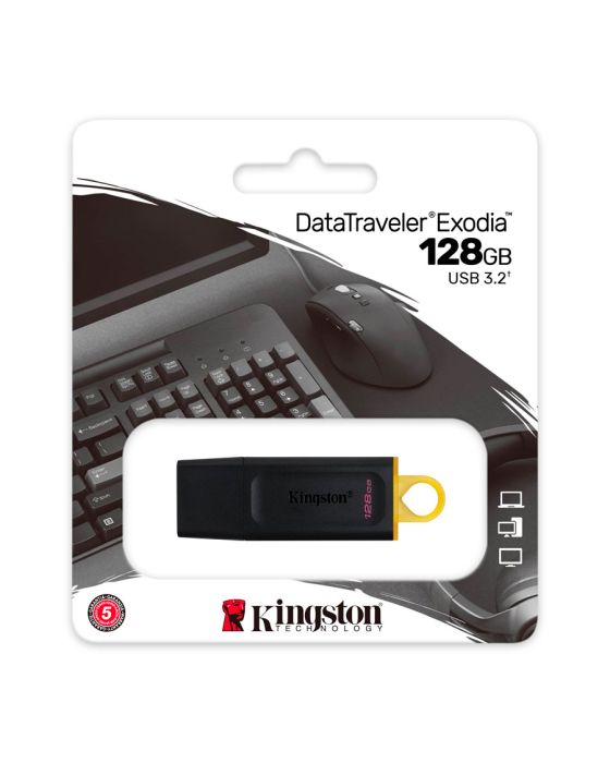Características:O DataTraveler® Exodia da Kingston possui desempenho USB 3.2 Ger 1 para fácil acesso a laptops, PCs, monitores e outros dispositivos digitais. O DT Exodia permite transferências rápidas e prático armazenamento para documentos, músicas, vídeos e muito mais. Seu modelo prático e cores modernas o tornam ideal para o uso diário no trabalho, em casa, na escola ou onde quer que você vá.- Argola grande, prende-se facilmente a um chaveiro- Tampa prática protege o plugue USB- Múltiplas opções de cor por capacidadeEspecificações- Capacidade: 128Gb- Velocidade: USB 3.2 Ger 1- Temperatura de operação: 0°C a 60°C- Temperatura de armazenamento: -230°C a 85°C- Compatível com: Windows® 11, 10, 8.1, macOS (v.10.14.x +), Linux (v. 2.6.x +), Chrome OS™- Dimensões: 67,3 x 21,04 x 10,14 mm- Peso: 11g- Garantia: 5 anos de garantia e suporte técnico local gratuito* As especificações podem ser alteradas sem aviso prévio ** Imagem meramente ilustrativa.