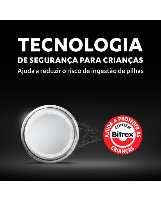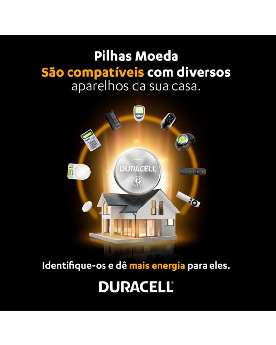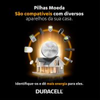 Características:As pilhas Duracell® tipo moeda oferecem a qualidade que só a Duracell® pode oferecer, e possuem energia de longa duração e diversos recursos de segurança para as crianças e bebês, sendo ideal para todo item eletrônico desde brinquedos até relógios!Detalhes:- Marca: Duracell;- Modelo: CR2032;- Referência: 5014604;- Linha: Pilhas;- Tipo: Moeda;- Volts: 3V;- Cor: Prata;- Contém: 1 blister com 2 unidade do produto;- A bateria Duracell possui potência confiável e prolongada;- Melhor performance VS pilha de zinco, dura muito mais;- Design aperfeiçoado e melhor desempenho.Ideais para: - São ideais para relógios de pulso, controles, chaves de carro, sensores, balanças digitais, lanternas e muitos outros aparelhos.Importante:- Embalagem com trava de segurança: Dupla proteção que só pode ser aberta por adultos utilizando uma tesoura;- Nova tecnologia de segurança para crianças: Uma camada que não é tóxica, mas tem um sabor amargo com Bitrex®, a substância mais amarga do mundo, é aplicada na parte posterior da pilha para evitar que bebês e crianças as engulam.Medidas:- Diâmetro do produto: 2cm.ATENÇÃO! MANTENHA FORA DO ALCALCE DAS CRIANÇAS MENORES DE 3 (TRÊS) ANOS POR CONTER PARTE(S) PEQUENA(S) QUE PODE(M) SER ENGOLIDA(S) OU ASPIRADA(S).* As especificações podem ser alteradas sem aviso prévio ** Imagem meramente ilustrativa.