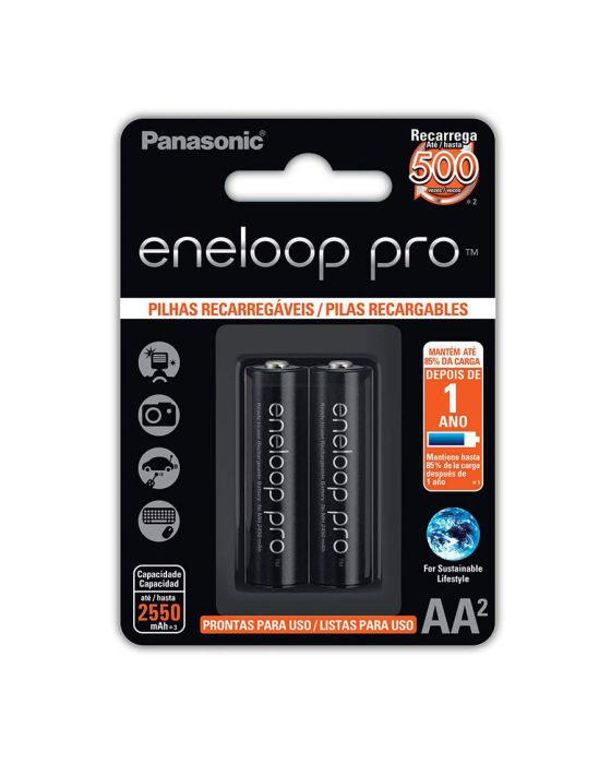 Características:- Alta performance para aplicações profissionais: Pilhas recarregáveis AA (pequena) com capacidade de 2.550mAh, projetadas para dispositivos de alto consumo energético em ambientes corporativos, como câmeras profissionais, lanternas táticas, instrumentos de medição e equipamentos eletrônicos diversos.- Tecnologia Eneloop Pro – pronta para uso imediato: Pré-carregadas de fábrica com baixa autodescarga, mantendo até 85% da carga após 1 ano sem uso. Elimina a necessidade de carregamento inicial e garante mais praticidade no dia a dia empresarial.- Eficiência energética e maior durabilidade: Tensão nominal de 1,2V, com entrega de energia constante mesmo sob uso prolongado. Ideal para operações que exigem confiabilidade contínua.- Solução ecológica e econômica para empresas: Cada pilha pode substituir centenas de pilhas alcalinas descartáveis ao longo da vida útil, alinhando sua empresa com práticas sustentáveis e de redução de custos com insumos.- Embalagem prática e padronizada: Contém 2 unidades por cartela, ideal para gestão de estoque em TI, manutenção, audiovisual e áreas operacionais.- Origem e qualidade garantida: Fabricadas no Japão, as pilhas Eneloop Pro da Panasonic são referência mundial em desempenho e durabilidade para aplicações profissionais.- Dimensões e peso da embalagem:Comprimento: 8,9cm;Largura: 12,5cm;Altura: 1,5cm;Peso total: 83g.* As especificações podem ser alteradas sem aviso prévio ** Imagem meramente ilustrativa.