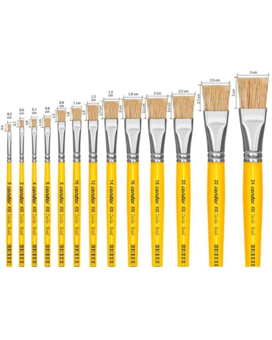 Caracteristicas:- Pêlo/Cerda: Cerdas brancas importada- Cabo longo de madeira amarelo - Formato chato- Virola de alumínio- Ideal para Escolar, Tecido e artesanatoDimensões- Pincel: 27 cm- Cerdas: 2 cm (comprimento). 18 mm (largura)* As especificações podem ser alteradas sem aviso prévio ** Imagem meramente ilustrativa