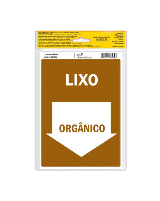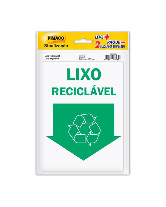 Placa De Sinalizacao Adesiva 14 X 19cm - Lixo Reciclavel E Lixo Organico Pimaco