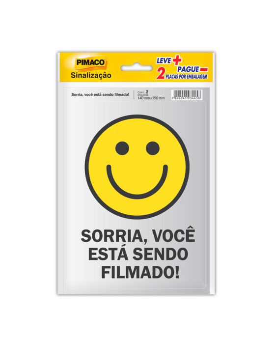 Placa Sinalizacao Adesiva 14 X 19cm - Sorria, Voce Esta Sendo Filmado! Pimaco
