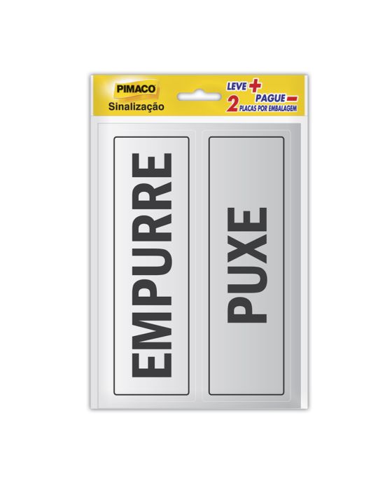 Placa Sinalizacao Adesiva 6,5 X 20cm - Empurre / Puxe Pimaco
