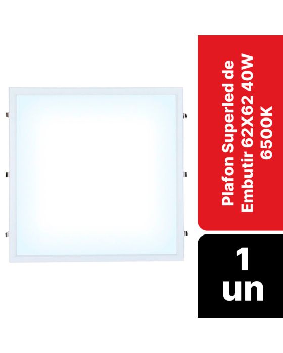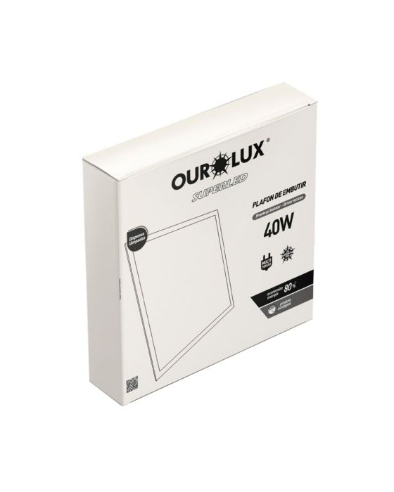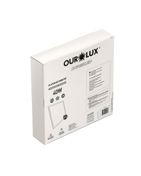 Características:A linha Plafon é ideal para ambientes residenciais e comerciais, pois oferece extrema qualidade, eficiência e durabilidade de 15.000 horas! Além disso, possui uma temperatura de cor natural e intermediária, ou seja, perfeita para lugares usuais como sala de estar e sala de jantar, assim como shoppings, já que sua iluminação neutra não altera a cor dos objetos.Detalhes:- Marca: Ourolux;- Modelo: Superled ;- Referência: 03170;- Linha: Iluminação;- Cor: Branco;- Voltagem/Tesão: Bivolt (110-240V);- Potência (W): 40W;- Formato: Quadrado;- Tipo: De embutir;- Contém: 1 unidade do produto;- Dispensa o uso de Lâmpadas;- Economiza energia;- Produto ecológico.Sugestão de uso:- Ambientes internos com necessidade de uma boa distribuição de luz.Energia:- Tensão Elétrica: Bivolt- Potência (W): 40W;- Fluxo Luz (lm): 3000lm;- Lâmpada Incandescente Equivalente (W): 150W;- Temperatura de Cor (K): 6400K (Branca Fria);- IRC mínimo: 70;- Feixe (Graus): 100;- Vida (horas): 15.000;- Dimerização: Não compatível;- Temperatura Ambiente de operação (°C): -10°C ~ +40°C;- Frequência: 50/60Hz;- Possui LED Integrado: Sim;- Nicho: 600 x 600 mm;- Grau de Proteção: IP20.Composição:- Alumínio, polímero termoplástico e componentes eletrônicos.Medidas:- Dimensões do produto: 6,2 x 6,2 x 3cm (CxLxA);- Dimensões da embalagem: 62 x 3 x 63cm (CxLxA);- Peso: 0,13kg.Conteúdo da embalagem: 01 Plafon Superled de Embutir 62X62 40W 6500K e 01 driverGarantia do fornecedor: 1 ano contra defeitos de fabricação.* As especificações podem ser alteradas sem aviso prévio ** Imagem meramente ilustrativa.