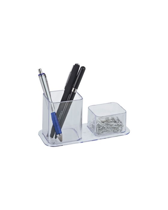 Caracteristicas:O Porta Lápis e Clips Cristal Dello é excelente para organizar as canetas lápis e clips em vez de ficarem espalhados pela mesa, deixando sua mesa de trabalho organizada e prática!Detalhes: - Marca: Dello.- Modelo: 3030.H.- Linha: Porta Lápis e Clips.- Cor: Cristal.- Contém: 1 unidade do produto.- Medidas: 17 x 7 x 8cm.- Peso: 0,093g.- Ideal para oganizar os Clips- Acomoda diversos tipos de materiais pequenos.- Possui dois compartimentos: 1 para canetas e 1 para clips.- Excelente para organização e personalização do seu ambiente.Composição:- Poliestireno.Atenção! Os objetos inclusos na imagem não acompanham o produto, estes devem ser adquiridos separadamente.* As especificações podem ser alteradas sem aviso prévio ** Imagem meramente ilustrativa