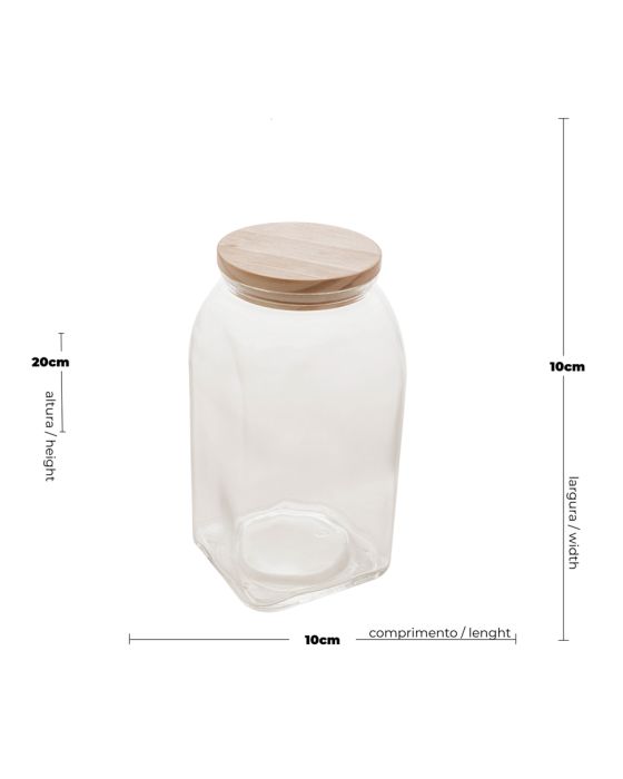 Características:O Porta Mantimento de Vidro com Tampa de Bambu de 1,4L da Lyor é uma escolha sofisticada e prática para armazenar mantimentos com estilo e eficiência.Design EleganteO design elegante do porta mantimento confere um toque refinado à sua cozinha, tornando-o uma peça versátil para diferentes estilos de decoração.Versatilidade de UsoAlém de mantimentos secos, o porta mantimento pode ser utilizado para armazenar outros itens, como doces, biscoitos, ou até mesmo objetos não alimentícios.Fácil de LimparO vidro facilita a limpeza, e a tampa de bambu pode ser removida para uma higienização completa.Detalhes:- Marca: Lyor;- Referência: 1914;- Linha: Porta Mantimentos;- Tipo: Armazenamento;- Cor da tampa: Bambu;- Cor do corpo: Incolor;- Capacidade: 1,4 Litros;- Contém: 1 unidade do produto;- Design simples e elegante;- Produto Versátil, podendo ser usado armazenamento de diversos tipos de produtos;- Fácil de limpar.Ideal para:- Ideal para Cozinha, Copas, Lavanderias, Dispensas, lanchonetes, restaurantes, panificadora e confeitaria, hotéis e demais estabelecimentos.Limpeza e cuidados:- Lavar com detergente neutro, esponja macia e secar imediatamente; - Não lavar em máquinas e não utilizar produtos químico.Recomendações:- Este produto não pode ir ao Micro-Ondas, Lava Louças, fornos, freezer e fogões.Composição: - Fabricado em Vidro.Medidas:- Dimensões do produto: 10 x 10 x 2014,5cm (CxLxA);- Peso: 0,64kg.Conteúdo da embalagem: 1 Porta Mantimento de Vidro com Tampa de Bambu 1,4L Lyor.As especificações podem ser alteradas sem aviso prévio ** Imagem meramente ilustrativa.