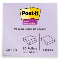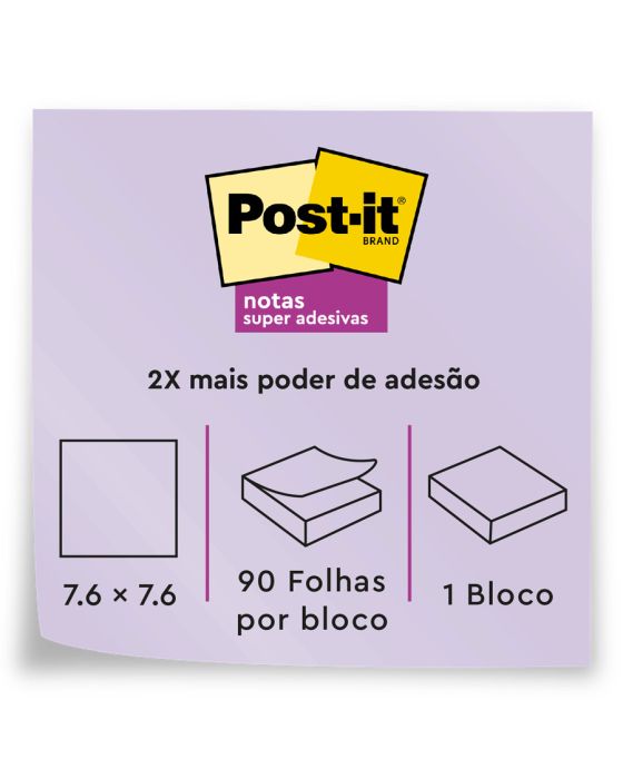Características:As notas adesivas Post-it® tamanho 7,6 cm x 7,6cm são ideais para anotações e recados. Ideal para fazer anotações e lembretes, possui diversas cores o que facilita sua organização. Possui um adesivo 2x mais forte do que o bloco Post-it® originalTodo papel utilizado nas notas Post-it® é certificado pelo SFI (Chain of Custody Certified), o que garante que vem de florestas bem administradas, onde as árvores são replantadas.Detalhes:- Marca: Post-it®;- Fabricante: 3M;- Referência: HB004767735;- Linha: Notas adesivas;- Cor: Branco Neve;- Quantidade de folhas: 90 folhas;- Quantidade de blocos: 1 bloco;- Contém: 1 embalagem com 1 bloco de 90 folhas;- Medidas: 76 x 76mm (7,6 x 7,6cm);- 2x maior poder de adesão;- Cola, descola e cola novamente para facilitar sua rotina;- Reciclável.Indústria Brasileira. | Validade: 5 anos após a data de fabricação.Aplicações sugeridas:- Ideal para lembretes em portas, janelas e paredes.Advertências:- O adesivo pode deixar marcas em algumas superfícies ou remover tinta. Teste antes de usar!Composição:- Bloco de papel com adesivo acrílico base água.Medidas:- Dimensões da embalagem: 7,6 x 7,6 x 1cm (CxLxA); - Peso: 46g.Conteúdo da embalagem: 1 Post-it Branco Neve 76 X 76 Mm 90 Folhas 3M.* As especificações podem ser alteradas sem aviso prévio ** Imagem meramente ilustrativa.