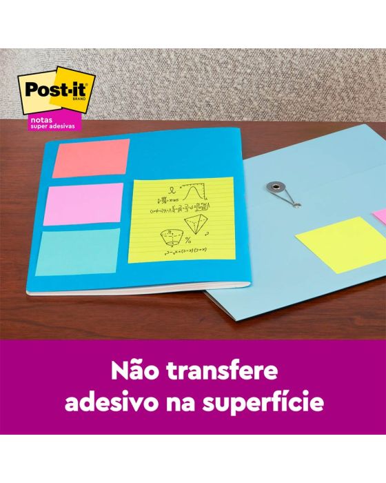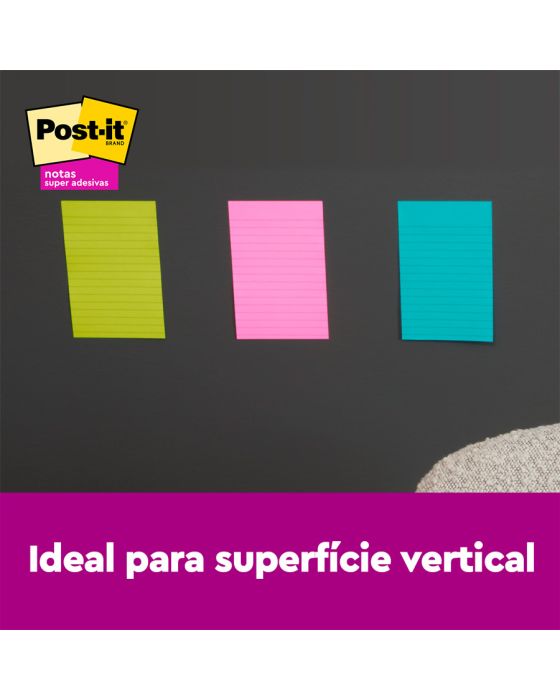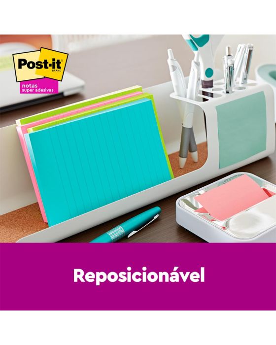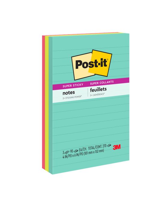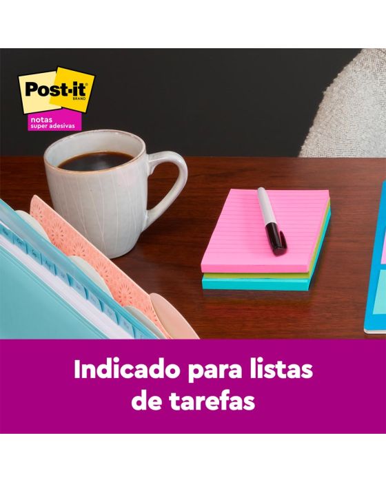 Caracteristicas:As Notas Super Adesivas Post-it® apresentam 2x maior poder de adesão. Com essas notas, você pode colar, descolar e colar novamente para mover lembretes e tarefas ao longo do dia.Você pode usar as Notas Super Adesivas Post-it®, com tamanho de 101 mm x 152 mm, para fazer anotações ou lembretes em portas, monitores, paredes ou janelas. As notas pautadas são ótimas para listas de tarefas ou mensagens mais longas. Seu adesivo exclusivo cola, descola e cola novamente de forma confiável para que sua mensagem fique no lugar que você quiser. Mova suas notas com você ao longo do dia!Detalhes:- Marca: Post-it®;- Fabricante: 3M;- Modelo: Coleção Supernova;- Referência: HB004769483;- Linha: Notas adesivas;- Cores: Telha, Amarelo e Azul elétrico.- Formato: 101 x 152mm.- Quantidade folhas: 90 folhas (270 folhas);- Contém 3 blocos de notas coloridas com 270 folhas;- Cores: Verde, Amarelo e Rosa;- 2 vezes mais poder de adesão do adesivo;- Cola, descola e cola novamente para facilitar sua rotina;- Use para criar lembretes em portas, monitores, paredes e janelas;- São feitas com 30% de papel reciclado;- O papel é proveniente de florestas certificadas, renováveis e geridas de forma responsável.Composição: - Bloco de papel com adesivo acrilico base água.Advertências:- O adesivo pode deixar marcas em algumas superfícies ou remover tinta. As cores podem borrar quando molhadas.- Pode não ser adequado para uso em papel ou superfícies delicadas. Teste antes de usar!As notas de Post-it® são recicláveis.Conteúdo da embalagem: 1 Post-it Colecao Supernova Pautado C/3 101 X 152 3m.* As especificações podem ser alteradas sem aviso prévio ** Imagem meramente ilustrativa.