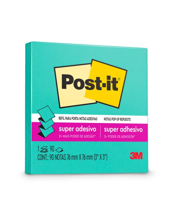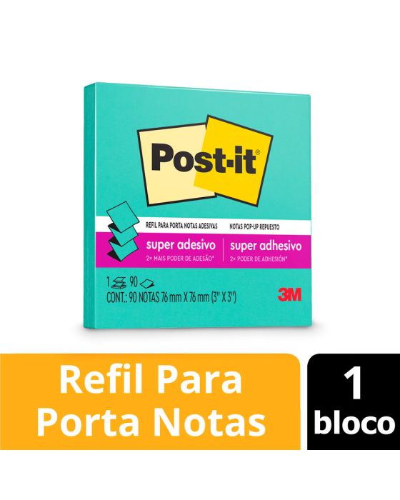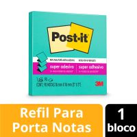 Caracteristicas:O bloco de notas adesivas Post-it® refil 76 mm x 76 mm para o sistema puxa fácil tem o formato parecido com uma sanfona e, quando utilizado junto à linha de suportes sistema puxa fácil para notas, permite que você retire uma nota por vez com apenas uma mão.Suas folhas são reposicionáveis, pois possuem adesivo de qualidade 3M que permite que essas sejam retiradas e recolocadas sem danificar papéis ou outras superfícies. Não deixa resíduos do adesivo.Todo papel utilizado nas notas Post-it® é certificado pelo SFI (Chain of Custody Certified), o que garante que vem de florestas bem administradas, onde as árvores são replantadas.Detalhes:- Marca: Post-it®;- Fabricante: 3M;- Referência: HB004309777;- Linha: Notas adesivas;- Tipo: Refil;- Cor: Azul Aqua;- Quantidade de folhas: 90 folhas;- Quantidade de blocos: 1 bloco;- Contém: 1 embalagem com 1 bloco de 90 folhas;- Medidas: 76 x 76mm (7,6 x 7,6cm);- Contam com 2x maior poder de adesão;- Cola, descola e cola novamente para facilitar sua rotina;- O refil para suportes sistema puxa fácil Post-it® são ótimas para retirada de uma nota por vez com apenas uma mão;- Organização garantida sempre com o bloco refil e suporte de nota Post-it®;- Reciclável.Aplicações sugeridas:- O refil deve ser utilizado junto aos suportes sistema puxa fácil Post-it®, já que possui um formato parecido com safona, facilitando a retirada de uma nota por vez com apenas uma mão. Além disso, os suportes são ótimos para dar a sua cara em casa ou no escritório.Composição:- Papel com adesivo com base vegetal reposicionável.AVISO!- O adesivo pode deixar marcas em algumas superfícies ou remover tinta. Teste antes de usar!Conteúdo da embalagem: 1 Post-it Refil Azul Aqua 76 X 76 Mm 90 Folhas.* As especificações podem ser alteradas sem aviso prévio ** Imagem meramente ilustrativa.