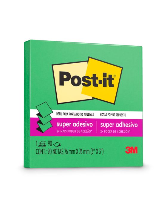 Caracteristicas:O bloco de notas adesivas Post-it® refil 76 mm x 76 mm para o sistema puxa fácil tem o formato parecido com uma sanfona e, quando utilizado junto à linha de suportes sistema puxa fácil para notas, permite que você retire uma nota por vez com apenas uma mão.Suas folhas são reposicionáveis, pois possuem adesivo de qualidade 3M que permite que essas sejam retiradas e recolocadas sem danificar papéis ou outras superfícies. Não deixa resíduos do adesivo.Todo papel utilizado nas notas Post-it® é certificado pelo SFI (Chain of Custody Certified), o que garante que vem de florestas bem administradas, onde as árvores são replantadas.Detalhes:- Marca: Post-it®;- Fabricante: 3M;- Referência: HB004309603;- Linha: Notas adesivas;- Tipo: Refil;- Cor: Verde Limão;- Quantidade de folhas: 90 folhas;- Quantidade de blocos: 1 bloco;- Contém: 1 embalagem com 1 bloco de 90 folhas;- Medidas: 76 x 76mm (7,6 x 7,6cm);- Contam com 2x maior poder de adesão;- Cola, descola e cola novamente para facilitar sua rotina;- O refil para suportes sistema puxa fácil Post-it® são ótimas para retirada de uma nota por vez com apenas uma mão;- Organização garantida sempre com o bloco refil e suporte de nota Post-it®;- Reciclável.Aplicações sugeridas:- O refil deve ser utilizado junto aos suportes sistema puxa fácil Post-it®, já que possui um formato parecido com safona, facilitando a retirada de uma nota por vez com apenas uma mão. Além disso, os suportes são ótimos para dar a sua cara em casa ou no escritório.Composição:- Papel com adesivo com base vegetal reposicionável.AVISO!- O adesivo pode deixar marcas em algumas superfícies ou remover tinta. Teste antes de usar!Conteúdo da embalagem: 1 Post-it Refil Verde Limao 76 X 76 Mm 90 Folhas.* As especificações podem ser alteradas sem aviso prévio ** Imagem meramente ilustrativa.