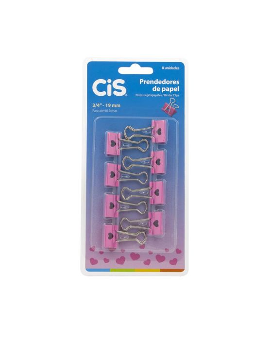 Caracteristicas: - Ideal para organizar documentos, materiais escolares, etc. - Blister com 08 unidades - Tamanho 19mm (60 folhas) - Produzido em metal de alta resistência na cor rosa com recorte em formato de coração * As especificações podem ser alteradas sem aviso prévio ** Imagem meramente ilustrativa