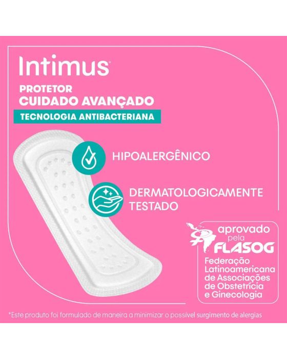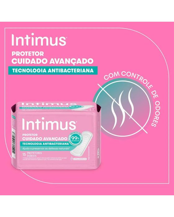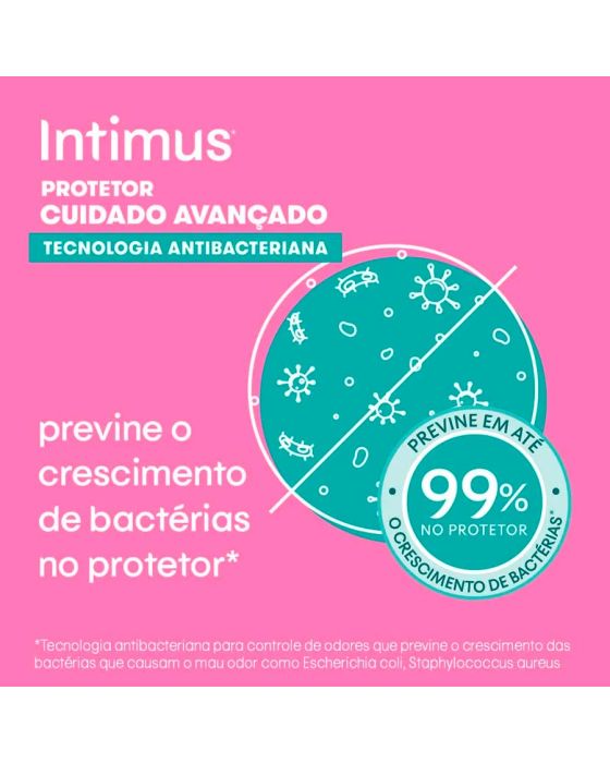 Características:O Protetor Diário Intimus® Cuidado Avançado com Tecnologia Antibacteriana ajuda a preservar as defesas naturais. Com Tecnologia Antibacteriana, possui materiais respiráveis para que o ar circule e a pele da sua região íntima respire.Características e benefícios:Ajuda a preservar as defesas naturais. Possui materiais respiráveis para que o ar circule e a pele da região íntima respire.Detalhes:- Marca: Intimus;- Linha: Protetor Diário;- Cor: Branco;- Quantidade: 80 protetores diários;- Contém: 1 embalagem com 80 unidades do produto;- Tecnologia Antibacteriana: Ajuda a preservar as defesas naturais;- Previne em até 99% o crescimento de bactérias;- Protetor cuidado avançado;- Respirável;- Dermatologicamente testado;- Hipoalergênico;- Produto não reutilizável.Industria Brasileira | Validade: 24 meses após a data de fabricação.Ideal para:- Uso externo.Modo de uso:- Retire a fita adesiva central;- Fixe o protetor na roupa íntima.Composição:- Celulose, Polietileno, Pegoterato, Poliglusam, Polipropileno, Ácido Láctico, Adesivos termoplásticos e papel siliconado.Medidas:- Dimensões da embalagem: 25 x 11 x 5,5cm (CxLxA).* As especificações podem ser alteradas sem aviso prévio ** Imagem meramente ilustrativa.