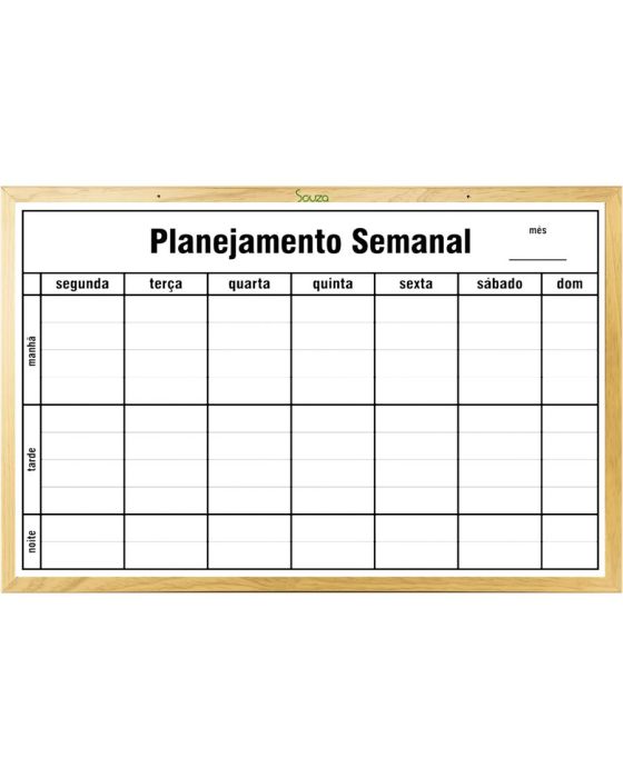 Quadro Branco Planejamento Semanal 60 X 90cm Madeira Souza 6331