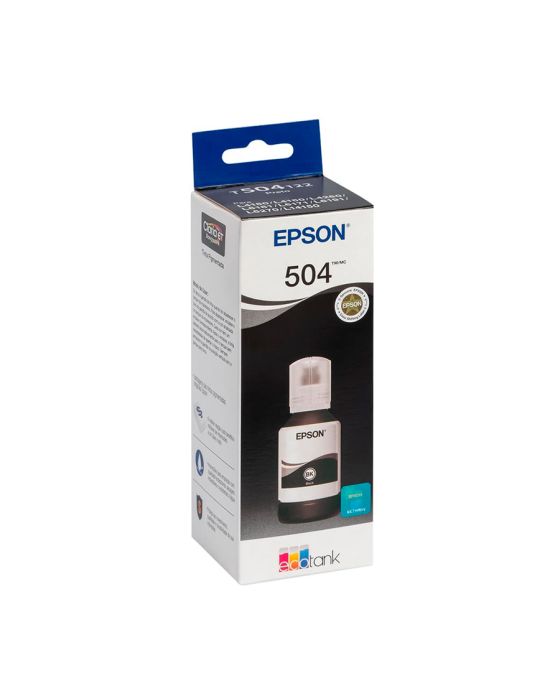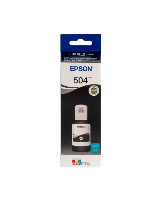 Características:Livre-se dos riscos usando tintas originais Epson garanta uma performance máxima: confiabilidade no rendimento de paginas (norma ISO), qualidade de impressão e durabilidade. As tintas originais Epson são projetadas para trabalhar em perfeita sintonia com nossas impressoras, gerando impressões de alta qualidade. Aproveite toda a performance Epson.Detalhes:- Marca: Epson;- Modelo: 504;- Referência: T504122;- Linha: Cartuchos;- Cor: Preto;- Volume cartucho: 127ml;- Contém: 1 unidade do produto;- Tecnologia de impressão: EcoTank;- Rendimento: Aproximadamente 7.500 páginas;- Garrafa embalada a vácuo dentro da caixa;- Tinta base de água;- Produto Original.Indústria Brasileira.Modo de uso:- Abra a garrafa de tinta quando for abastecer o taque da impressora;- Para abastecer, encaixe o bico da garrafa de acordo com a cor sinalizada no tanque da impressora.- Cada cor tem um encaixe correspondente;- Após o encaixe, a tinta descerá automaticamente para o tanque sem necessidade de apertar o frasco.Recomendações:- Sempre armazene o frasco na posição vertical com a tampa para cima;- Não ingerir e evitar o contato com os olhos e a boca.Impressoras Compatíveis*:- Modelos Impressora Epson L4150 / L4160 / L4260 / L6161 / L6171 / L6191 / L6270 / L14150.* Informação importante: O modelo T504122-BR substituiu o modelo T504120-AL, sendo compatível com os mesmos modelos de máquinas.Composição da tinta:- Água, Glicerol, TEGBE, Corante e Trietanolamina.Medidas:- Dimensões embalagem: 5,7 x 5,1 x 18cm (CxLxA);- Peso: 118,9gDescarte de Cartuchos e Toners:- Você pode fazer o descarte com ajuda do ReCiclo, um projeto da Contabilista através da Contabilista Responsável, basta enviar os seus resíduos para a nossa Central de Distribuição*, se você é de Curitiba ou de Joinville, pode ir até uma de nossas lojas ou preencher o formulário disponível no site para solicitar retirada de materiais.Acesse o Link para verificar as marcas que reciclamos e nossos endereços: https://www.contabilistaresponsavel.com.br/reciclo.* Peso máximo para coleta: 10 kg.* Enviar conteúdo aos cuidados do Setor de Reciclagem.** Atenção: Cartuchos e Toners compatíveis não entram no descarte do ReCiclo, apenas suprimentos originais de nossos parceiros (confira a lista no link acima).Conteúdo da embalagem: 1 Cartucho de Tinta.Garantia do fornecedor: 12 meses contra defeitos de fabricação.MANTENHA FORA DO ALCANCE DAS CRIANÇAS E DOS ANIMAIS DOMÉSTICOS.* As especificações podem ser alteradas sem aviso prévio ** Imagem meramente ilustrativa.