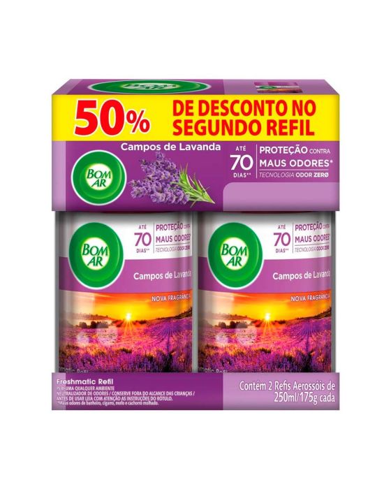 Refil Odorizador Bom Ar Freshmatic Campos De Lavanda C/2 250ml