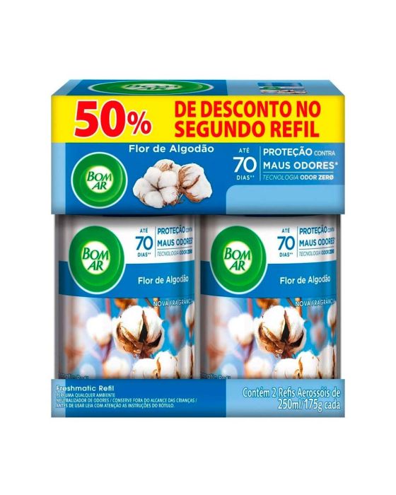 Refil Odorizador Bom Ar Freshmatic Flor De Algodao C/2 250ml